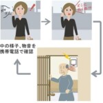 - 徘徊や人の動きを感知してその場でお知らせ、または電話回線を通じて携帯電話などへ通報。