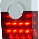 押しボタンやセンサーが感知すると、離れた場所で眩しい28個の赤LEDと音でお知らせします(送信機と組み合わせて使用します)。