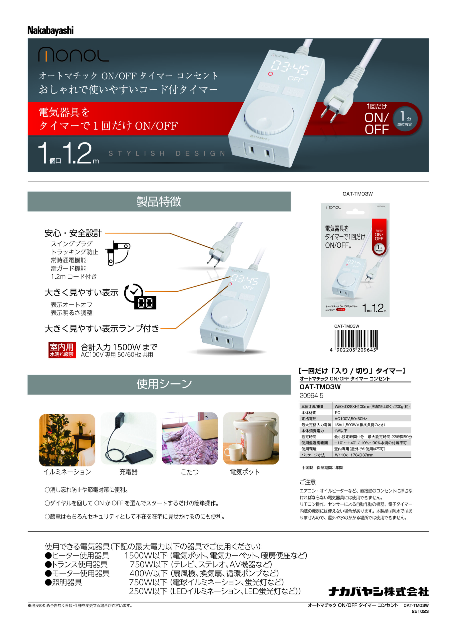 • リモコン操作、センサーによる自動作動の機器、電子タイマー内蔵の機器には使えない場合があります。