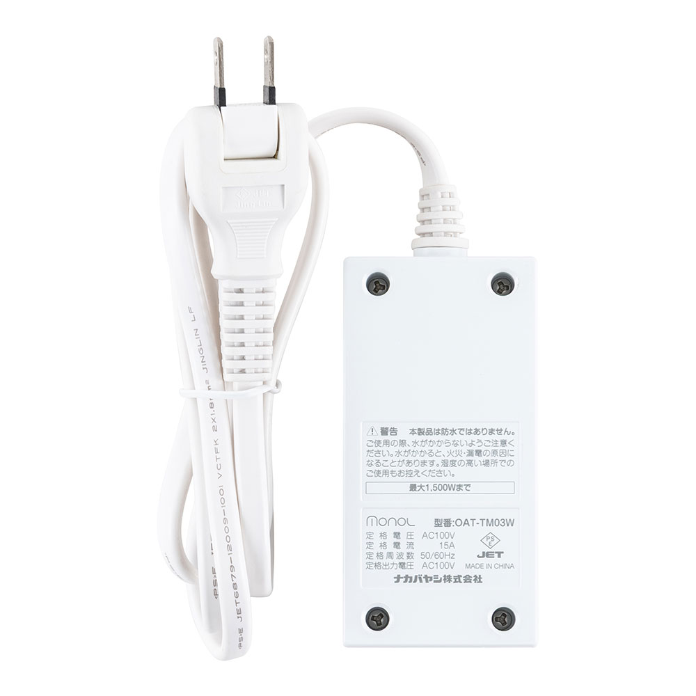 • エアコン・オイルヒーターなど、直接壁のコンセントに挿さなければならない電気器具には使用できません。