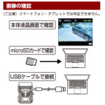 液晶画面付きなので、パソコン無しでも録画した画像を確認できます。