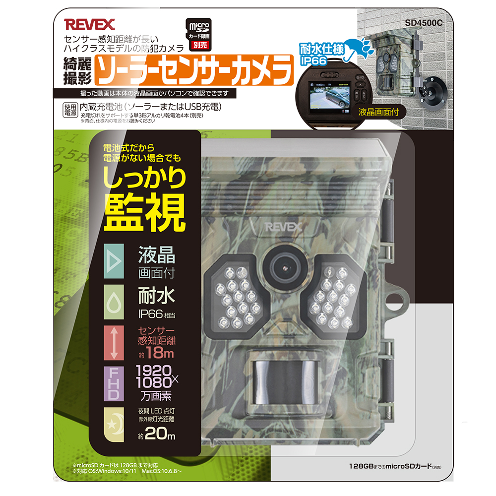 ソーラー充電式でセンサー感知距離が長いハイクラスモデルの防犯カメラ 最長20m