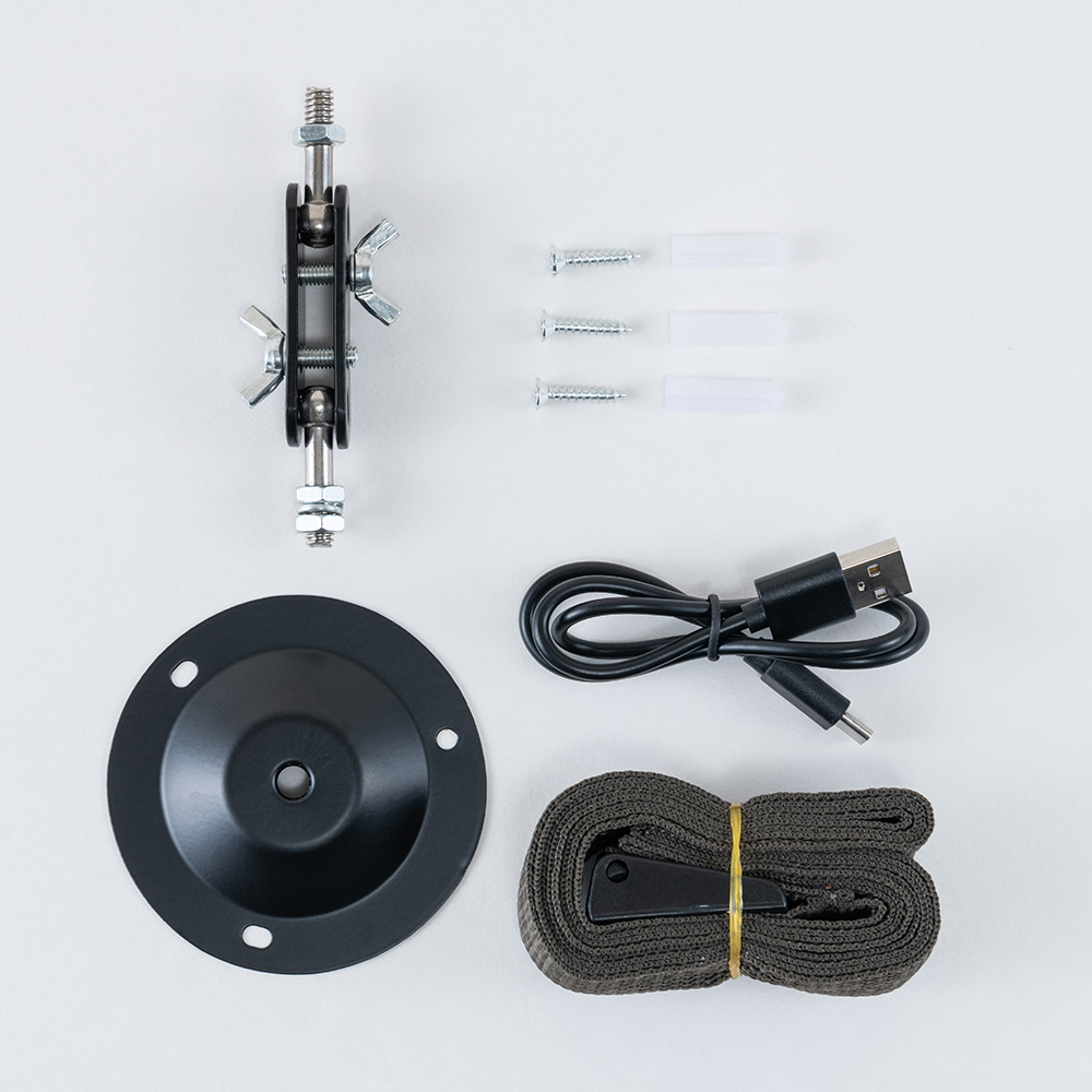 • 付属品:USBケーブル、取付ベルト、カメラスタンド、台座、ネジ3本、リブ3本