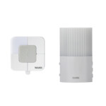 押しボタンを押すと、離れた場所にある受信機が光やチャイム音でお知らせします。