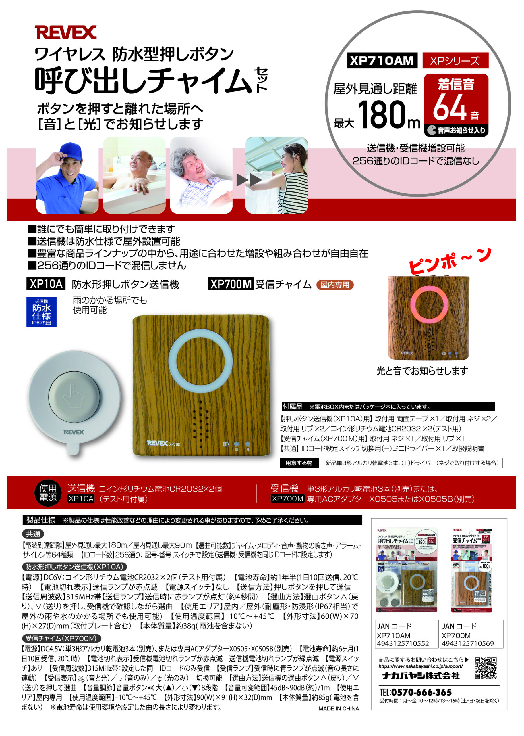 押しボタンを押すと、離れた場所で光やチャイム・音声などでお知らせします。